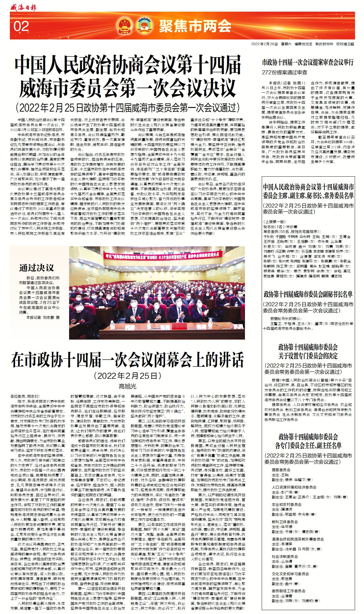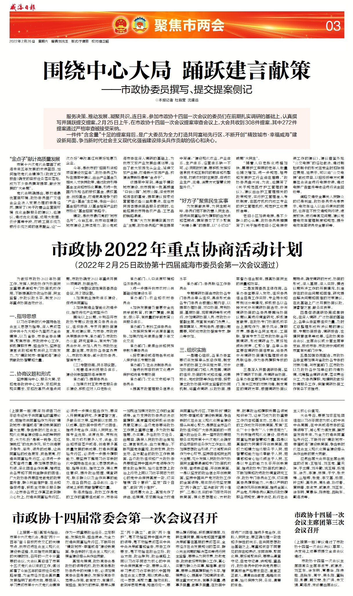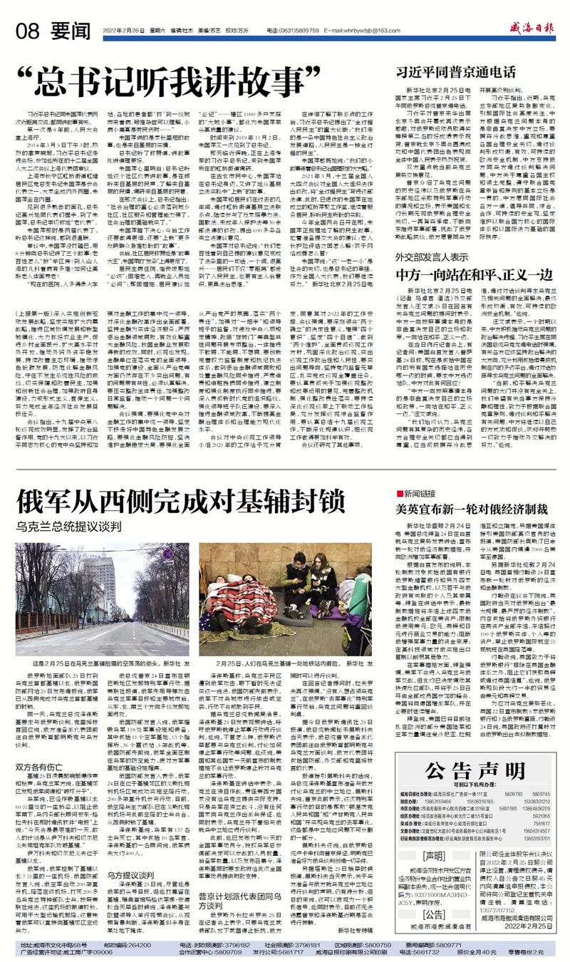 威海日?qǐng)?bào)2022-02-26