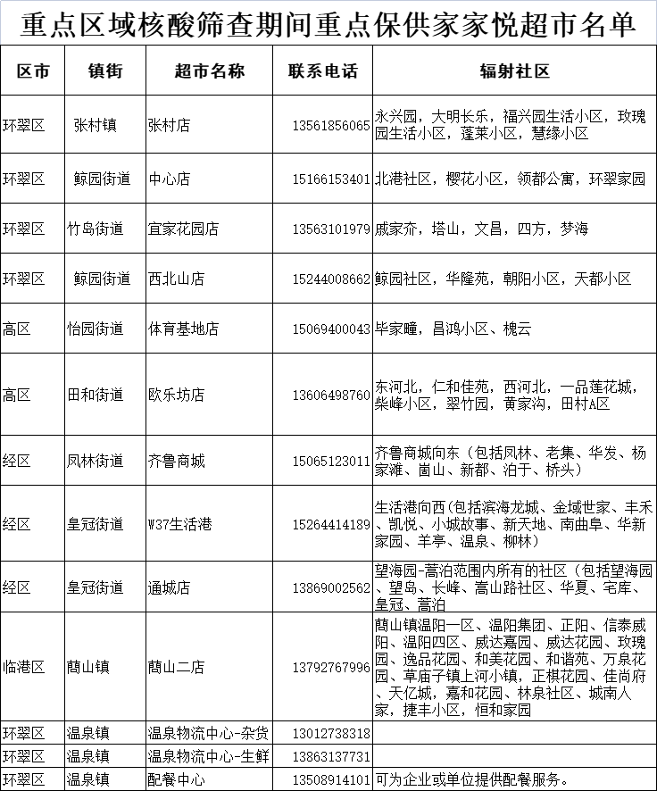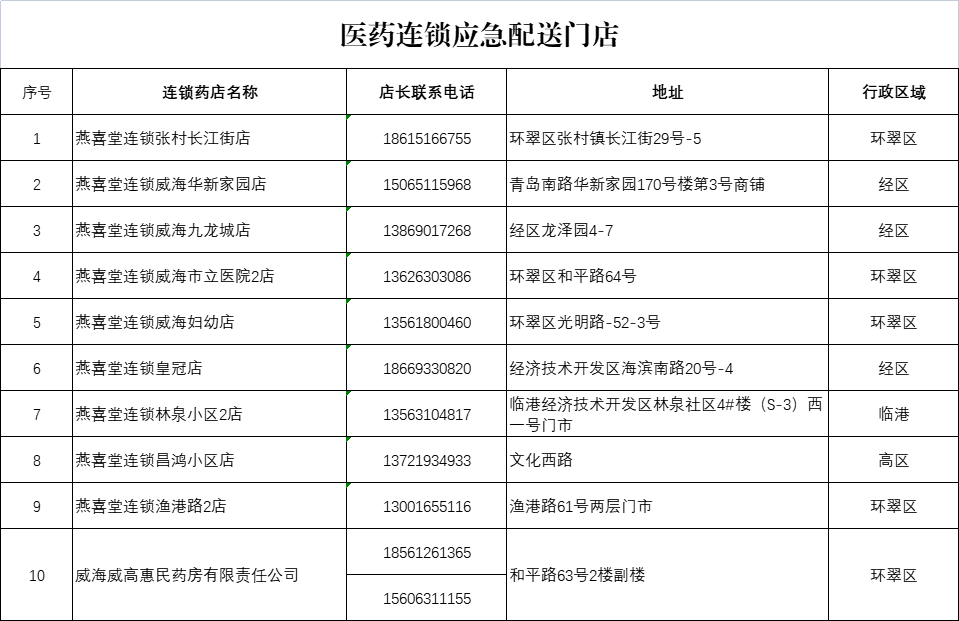 威海重點區域核酸篩查期間重點保供家家悅超市名單(附醫藥連鎖應急配送門店名單)