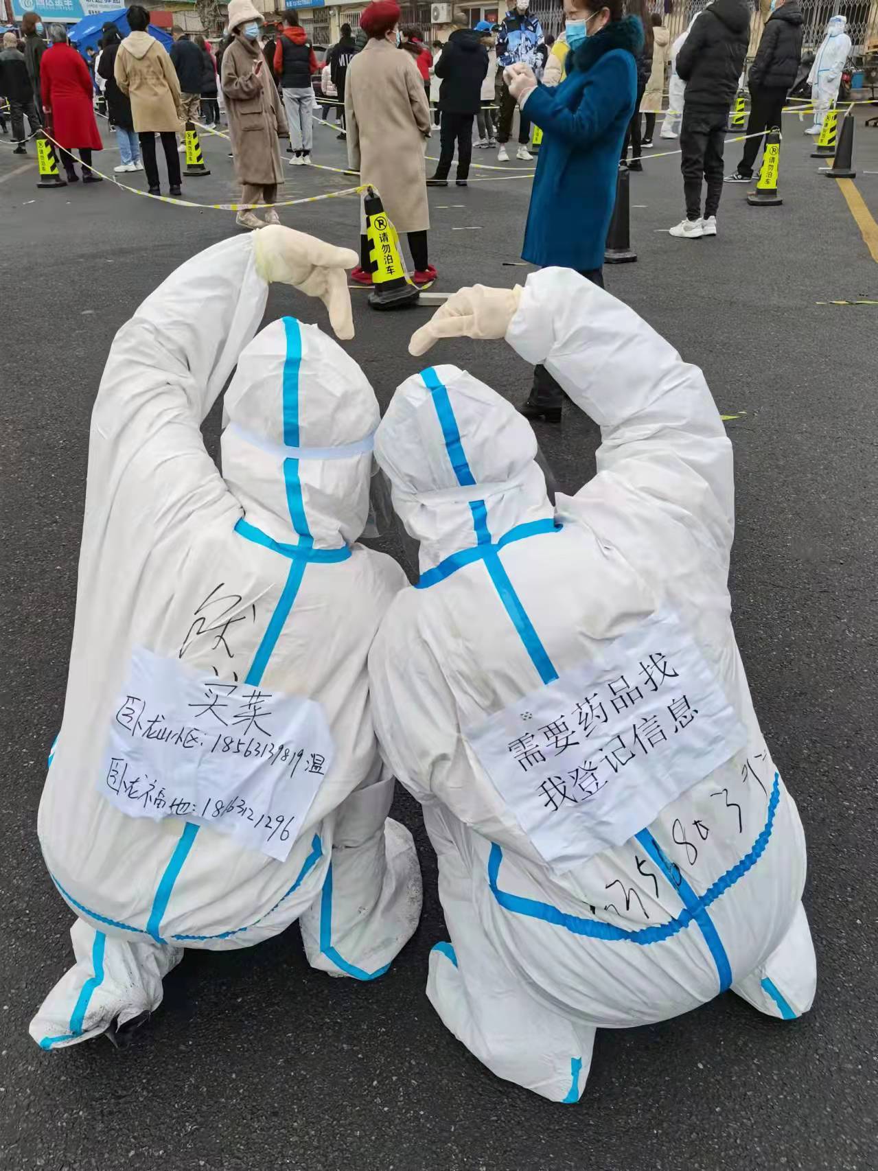 “買菜給聯系電話”“買藥找我登記信息”……3月14日,在臥龍山社區陳家后溝檢測點,社區工作者王卓然和同事身上的“廣告”引起了居民的注意。