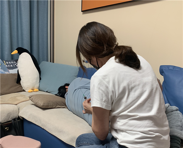 ??????3月14日下午3時(shí),高新區(qū)怡園街道臥龍山社區(qū)居民戚女士將一名“大白”迎進(jìn)家中。“大白”上門,并非為了做核酸采樣,而是為懷孕的戚女士打針。