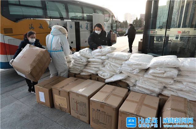 ????當天下午3時許,一輛掛有“愛在威海,同心抗疫”橫幅的客車,穩穩停在環翠區張村鎮政府門前。車上,滿載著嶄新的白色羽絨服。車前,一位位志愿者、工作人員你搬我運,有序參與到卸貨工作中。