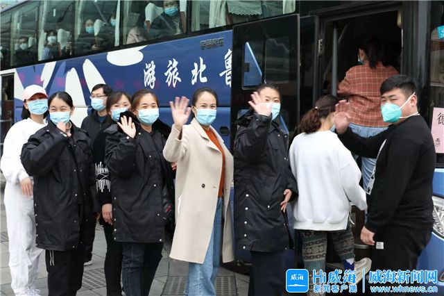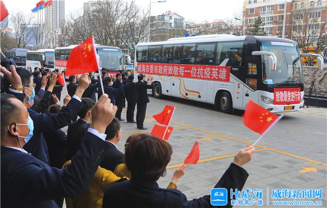 ??????3月21日下午兩點,經開區龍躍國際大酒店院內,9輛“魯J”牌照的大巴車整裝待發。每輛車都身披橫幅,上面寫著:“威海市委市政府致敬每一位抗疫英雄?!?/p>