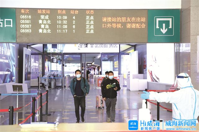 ??????“請保持一米距離,有序排隊。”“請自主掃碼填報‘入威返威人員自主申報系統’”……4月3日14時03分,伴隨從南京方向駛來的動車慢慢停靠,威海站出站口小喇叭提示音響起。身著防護服的工作人員早已在熱成像人體測溫儀電子屏幕和分流通道前就位,緊盯屏幕對出站旅客進行體溫監測,引導旅客按照區市進行分流。