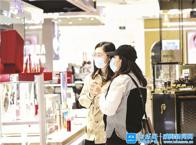 ??????“這款精華的質地特別好,您可以在手背上試一下。”4月20日上午,在威海振華商廈一樓的一處專柜前,兩名市民正在挑選護膚品,柜員熱情地講解著產品功效。