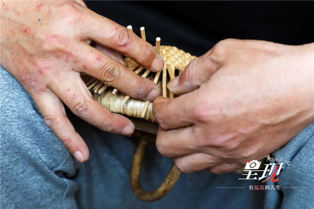 ??????周建順的手背上,全是被柳條戳的密密麻麻的傷痕,右手小指一側已長滿老繭,這是經年累月練就熟練功夫而不放棄平生所學的守藝之手。