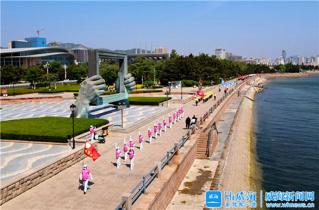 ??????當日上午8時30分,來自市徒步運動協會及各區市徒步運動組織的近500名徒步愛好者統一穿著運動服裝,在威海公園文化廣場上分別進行了健身操展演及集體熱身活動。9時許,各徒步隊伍依次列隊走出廣場,向南沿威海公園海濱健身步道,進入悅海公園后至悅海燈塔處折返,約一個小時后返回出發地。