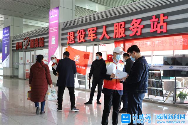 退役軍人志愿者在高鐵站向過往乘客進行普法宣傳