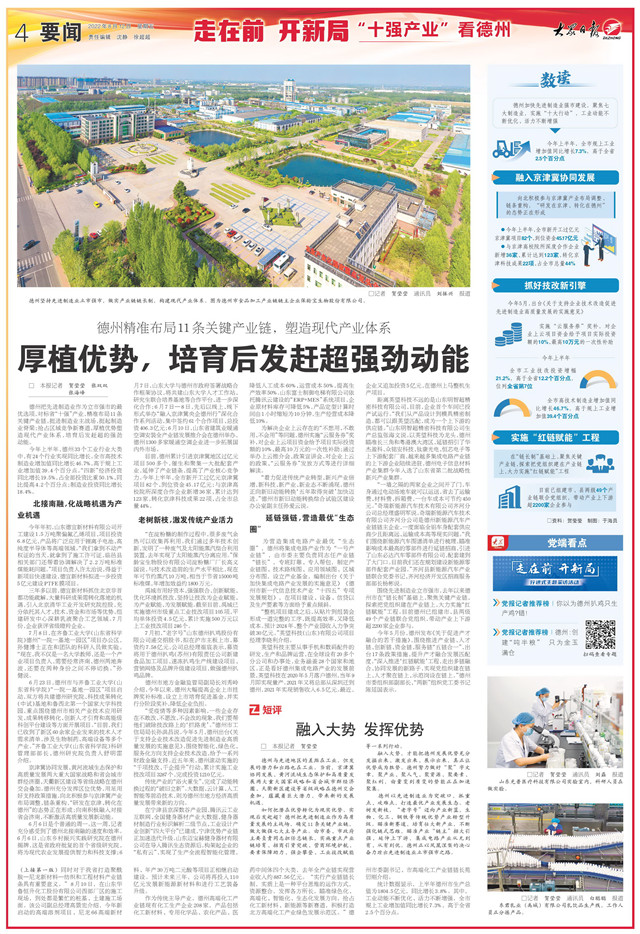 ??????德州把先進制造業作為立市強市的最優選項,對標省“十強”產業,精準布局11條關鍵產業鏈,挺進制造業主戰場,挺起制造業脊梁;搶占區域競爭新賽道,厚植優勢塑造現代產業體系,培育后發趕超的強勁動能。