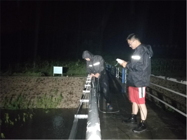 ??????8月9日晚11時許,榮成市鮑村水文站,一名“90后”小伙正在風雨中監測雨量和水位,他就是榮成市水文中心的李憲卿。本輪降雨以來,李憲卿沒睡過一個安穩覺,鮑村水文站河道監測斷面屬于山溪型河流水文監測斷面,河源短,比降大。流域內突降暴雨時,洪水來臨就在一瞬間,洪峰通過斷面也是轉瞬即逝,搶測洪峰判斷洪峰難度較高。每逢降雨李憲卿及同事們都會及早著手準備好每一個流量測驗設備,守在基本水尺斷面,精準把握水位變化和洪峰過程,及時上報數據信息,容不得一點懈怠和走神,生怕錯過流量變化過程。