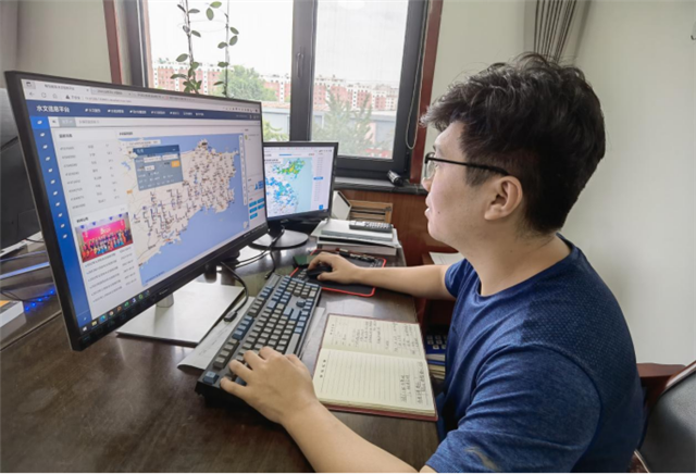 ??????山東省水文中心啟動水文應急測報Ⅳ級響應后,呂丹寧便進入了“陀螺”狀態:在微信群和短信平臺發布雨水情信息,做好一份份水情預報、簡報,對水文數據進行分析研判,為相關部門、社會公眾提供實時水雨情信息,為各級各部門防汛決策提供強有力的技術支撐。