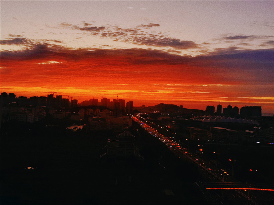 8月15日傍晚,威海天空出現了“火燒云”景觀,“火燒云”常出現在夏季,特別是在雷雨之后的日落前后。話不多說,一波好看的“火燒云”來啦!