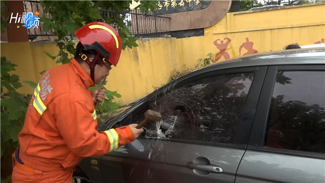 ??????征得車主同意后,救援人員決定通過破拆車窗玻璃救出兒童。他們利用膠帶把玻璃粘住,防止破拆時產生碎渣對兒童造成二次傷害。玻璃被敲出洞口后,工作人員隨即將車解鎖,被困兒童被安全救出。