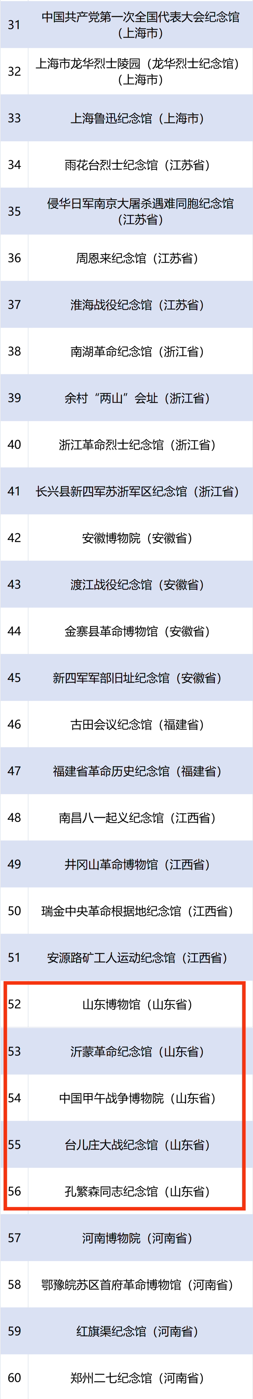 ????為深入貫徹落實(shí)習(xí)近平總書記關(guān)于“大思政課”的重要指示批示精神,加快構(gòu)建“大思政課”工作格局,近日,教育部、國家文物局聯(lián)合公布首批100家中華優(yōu)秀傳統(tǒng)文化、革命文化、社會主義先進(jìn)文化專題實(shí)踐教學(xué)基地。山東5家單位入選,分別是山東博物館、沂蒙革命紀(jì)念館、中國甲午戰(zhàn)爭博物院、臺兒莊大戰(zhàn)紀(jì)念館、孔繁森同志紀(jì)念館,入選數(shù)量居全國第二位。