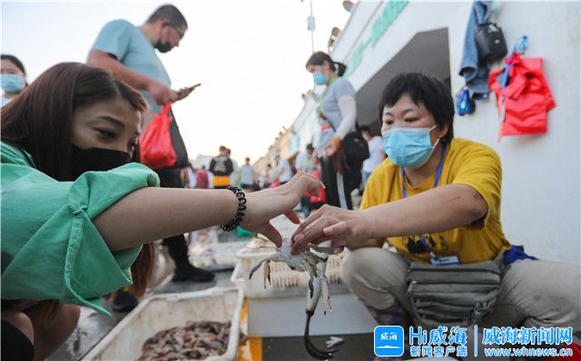 ??????原來,郭先生和妻子來威海送兒子上大學,正趕上開海第一天,他們一家三口想感受下開海首日的氣氛,同時也嘗嘗鮮,所以帶著孩子一起過來了。“怕等會人太多買不上,就提前訂。”郭先生的妻子劉女士說,這次,他們準備買點螃蟹、蝦等海鮮,晚上找家飯店給加工一下。