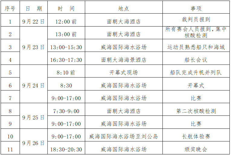 ??????2.身體健康,具備參加帆船賽的身體條件,自愿承擔因隱瞞身體狀況或錯誤評估身體條件參賽而導致的一切不良后果和法律責任。本次賽事婉拒境外運動員參賽,暫不接受中高風險地區人員、居住社區10天內發生疫情的人員、7天內存在本土疫情的地級市和有擴散風險的毗鄰地區旅行史接觸史人員報名。賽會人員與會(含常駐中國的外籍人員)須持有電子健康碼、行程碼、48小時內核酸檢測陰性證明,同意組委會因公共衛生事件采取的隔離觀察、核酸檢測等措施。組委會將至少集中組織2次核酸檢測,不按規定參與集中核酸檢測人員將取消參賽資格或參賽成績。