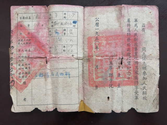在裝殮儀式現場陳列的志愿軍烈士遺物中