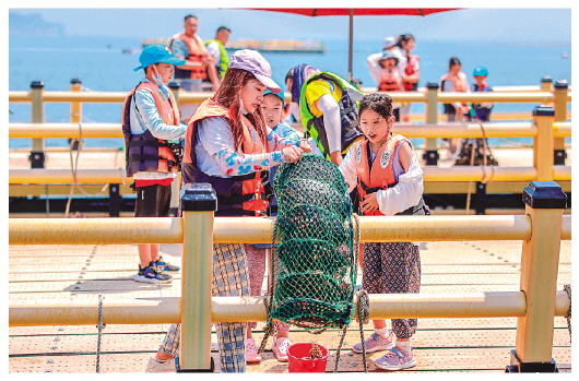 ??????孫勝說:“一方水土養一方人。威海在飲食文化、民風民俗、方言土語等諸多方面,無不散發著濃濃的海味。游客在這里短暫停留,既可以在海洋牧場采摘扇貝、牡蠣,抓河豚,釣螃蟹,也可以在漁村民宿放松身心,感受地道的膠東文化。”
