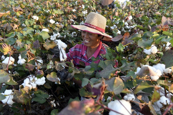 ??????金秋時節,產棉大縣山東省濱州市無棣縣西小王鎮6萬畝鹽堿地棉花進入采收季。9月28日,山東省濱州市無棣縣西小王鎮棉農在采收新棉。新華社記者 范長國 攝