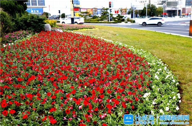 ??????10月12日,經開區上海路—海濱南路環島花境改造工程完工,栽植花卉約65000盆,“大轉盤”煥顏升級,一場絕美的“秋日童話”上演。