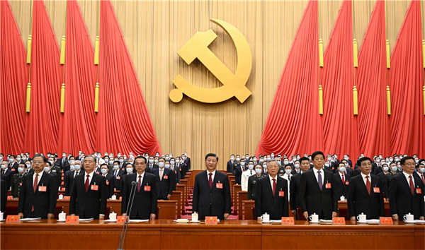 ??????10月16日,中國共產黨第二十次全國代表大會在北京人民大會堂開幕。這是習近平、李克強、栗戰書、汪洋、王滬寧、趙樂際、韓正、胡錦濤在主席臺上。新華社記者 李學仁 攝