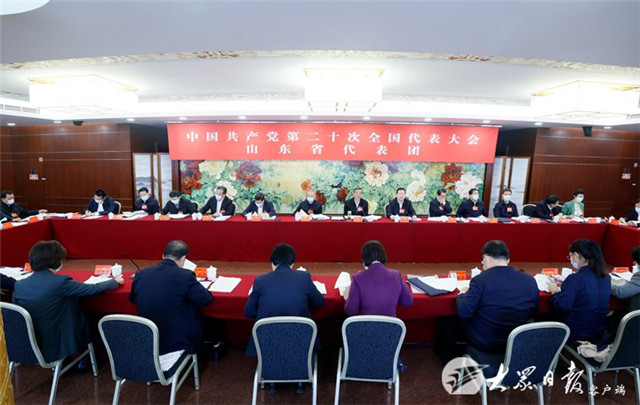 出席黨的二十大山東省代表團10月18日繼續舉行分組會議,學習討論黨的二十大報告,學習習近平總書記在參加廣西代表團討論時的重要講話精神,討論《黨章(修正案)》、十九屆中央紀委工作報告。