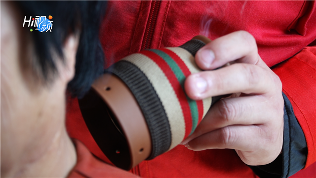 ??????活動現場,來自白手杖公益服務中心的青年將親手制作的艾條送給了輦子村村民。