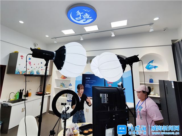 ??????中心啟用當(dāng)天,工作人員便通過直播帶貨的方式,出售威海特色手造產(chǎn)品,格外引人注目。