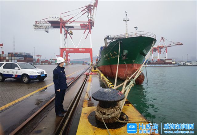 ??????11月28日下午,威海新港碼頭,新港海事處港區(qū)海巡執(zhí)法大隊大隊長張彤旭正細致檢查碼頭停靠的“順遠177”輪纜繩系固情況。“要密切關注海上氣象,加強大風期間船舶值班值守,如有必要盡早選擇錨地避風。”張彤旭叮囑“順遠177”船長。