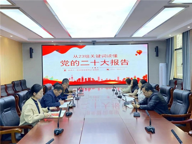 領(lǐng)導班子做好表率,黨支部步步跟進。11月30日,威海市水文中心機關(guān)黨支部書記張明芳,作了題為《從23組關(guān)鍵詞讀懂黨的二十大報告》的宣講報告,以23組關(guān)鍵詞為切入點,為大家宣講黨的二十大精神。