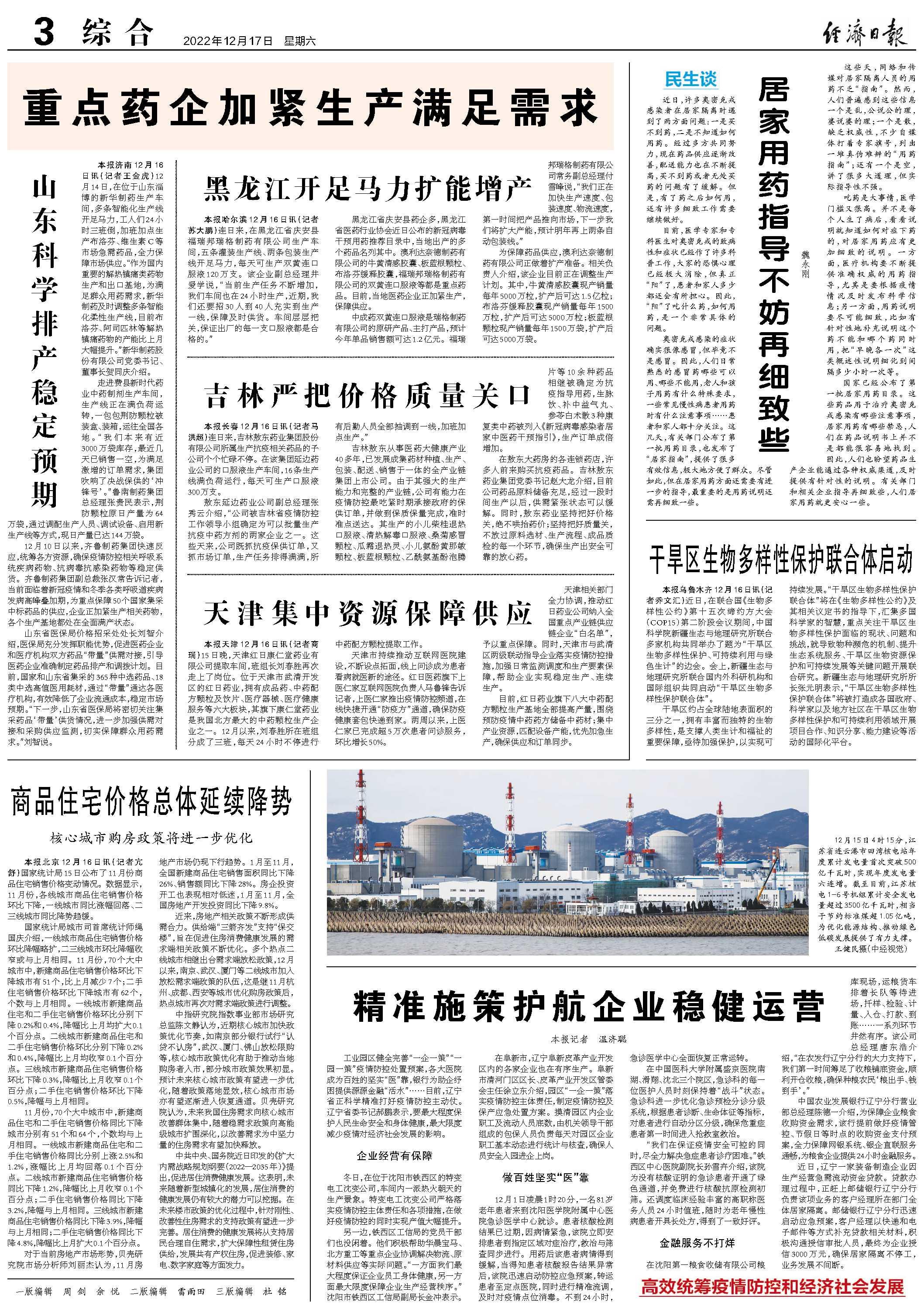 ??????12月10日以來,齊魯制藥集團快速反應,統籌各方資源,確保疫情防控相關呼吸系統疾病藥物、抗病毒抗感染藥物等穩定供貨。齊魯制藥集團副總裁張漢常告訴記者,當前面臨著新冠疫情和冬季各類呼吸道疾病發病高峰疊加期,為重點保障50個國家集采中標藥品的供應,企業正加緊生產相關藥物,各個生產基地都處在全面滿產狀態。