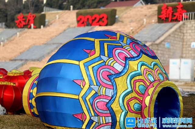 ??????春節臨近,威海市園林部門工作人員開始布置市人民廣場立體景觀,營造喜慶的節日氛圍。