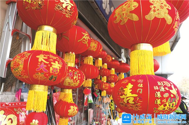??????1月4日,記者在位于市區(qū)西北山路的威海小商品批發(fā)市場(chǎng)看到,待售的春聯(lián)、燈籠等新春飾品把這里裝飾得十分紅火。