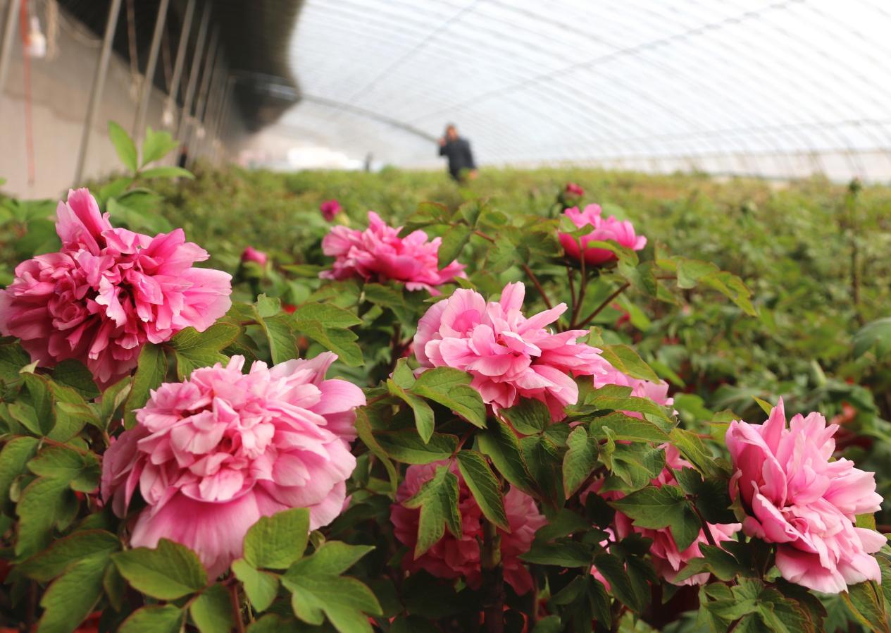 圖為春節(jié)臨近,菏澤市牡丹區(qū)皇鎮(zhèn)街道花農(nóng)種植的30萬盆催花牡丹陸續(xù)綻放,種植催花牡丹也成為當(dāng)?shù)鼗ㄞr(nóng)增收致富的特色產(chǎn)業(yè)。