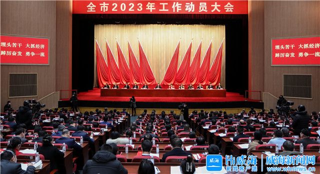 ??????威海新聞網訊 1月28日,全市2023年工作動員大會舉行。會議以習近平新時代中國特色社會主義思想為指導,深入學習貫徹黨的二十大精神,全面落實中央決策部署和省委工作要求,表揚2022年度全市高質量發展突出貢獻企業、單位和個人,動員全市上下埋頭苦干,大抓經濟,踔厲奮發,勇爭一流,積極全面融入山東綠色低碳高質量發展先行區建設,全力打造共同富裕先行區,不斷開創“精致城市·幸福威?!苯ㄔO新局面,爭當新時代社會主義現代化強省建設排頭兵,努力為全省全國發展大局作出更多威海貢獻。市委書記閆劍波講話,市委副書記、市長孔凡萍主持,市領導高旭光、賈瑞靄、劉樹軍等出席。