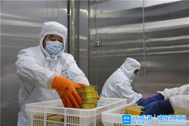 ??????2月2日,走進山東德善食品有限公司生產車間,身穿工作服的工人正在緊張忙碌著,生產線上,一盒盒經過自動清洗、自動加料、自動封裝的“天海藏”麻辣龍蝦尾包裝完成,運往冷庫保存,將發往全國各地。