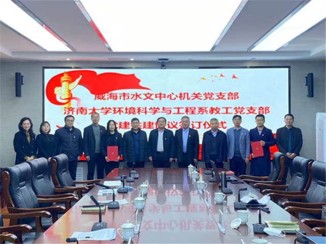 會上,雙方共同觀看了威海市水文中心黨建工作紀實宣傳片,并分別就各自黨建工作基本情況和業務資源優勢展開討論,雙方一致認為:共同開展黨建活動是雙方資源共享和優勢互補的重要方式,能夠進一步促進雙方共同提升黨建工作質量和增進雙方業務合作。威海市水文中心機關黨支部和濟南大學環境科學與工程系教工黨支部現場簽訂了黨建共建協議,在黨建、科研項目、技術攻關、成果推廣等方面進行了深度融合。