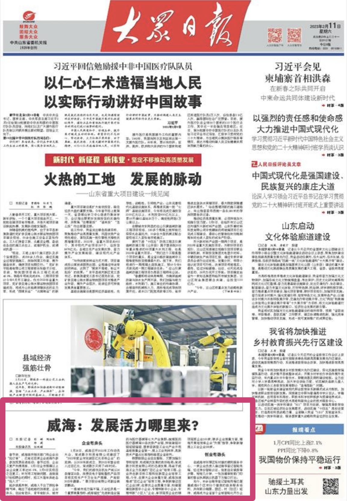 ??????2月11日,《大眾日報》在頭版重要位置刊發《威海:發展活力哪里來?》,引發廣泛關注,以下為報道全文——