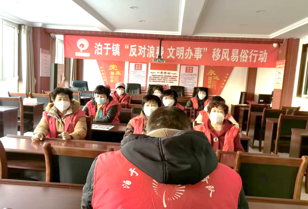 為進一步弘揚社會正氣,破除陳規陋習,倡導社會文明新風尚,泊于鎮持續深化“反對浪費 文明辦事”移風易俗行動,將美德和信用建設融入其中,發揮道德評議會、紅白理事會等作用,引導廣大群眾自覺抵制婚喪事大操大辦、封建迷信等不良習俗,今年以來,組織志愿者開展移風易俗宣傳宣講活動10余次,惠及群眾300余人次。