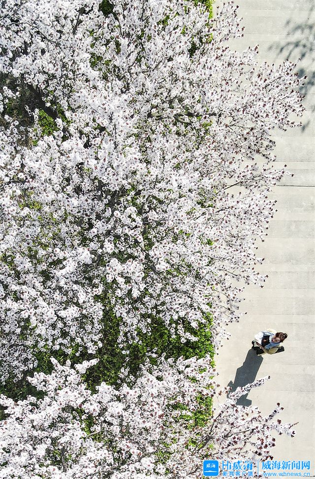 ???? 在環翠樓公園,一株株杏樹花應時綻放,競相綻放的杏花潔白似雪,在春風中一爭芳菲。