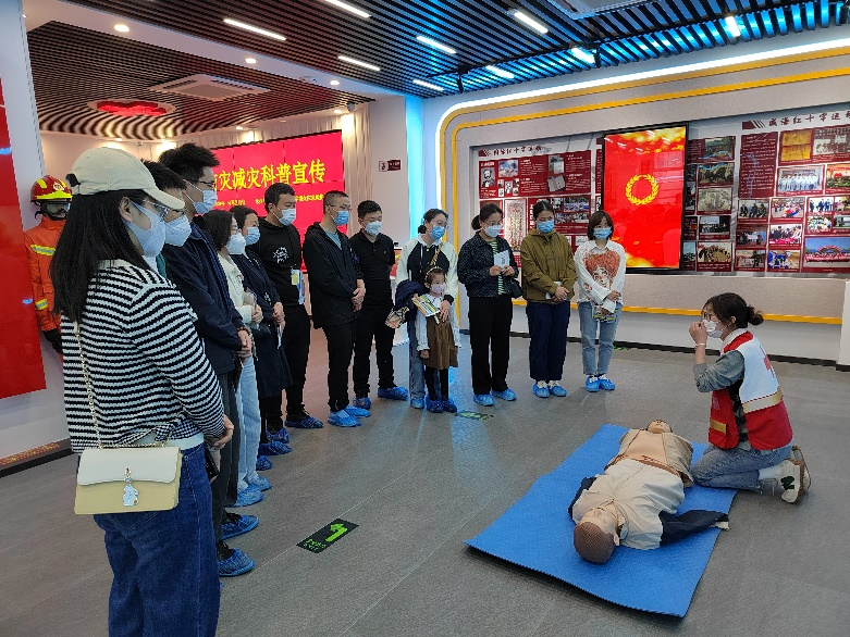 在人防宣教工作站內(nèi),除了向參觀人員講解防災(zāi)減災(zāi)知識(shí),工作人員還現(xiàn)場演示并指導(dǎo)參觀人員學(xué)習(xí)心肺復(fù)蘇技能。