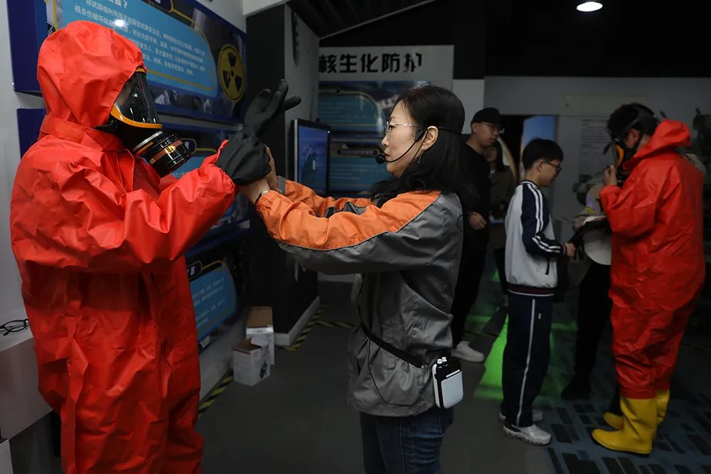 在人防體驗(yàn)館,市國動(dòng)辦組織學(xué)生進(jìn)行防空疏散體驗(yàn)、知識(shí)闖關(guān)游戲、簡易防毒面具制作、試穿防護(hù)服等多個(gè)互動(dòng)項(xiàng)目。在學(xué)生參觀人防示范工程的過程中,工作人員向?qū)W生們講解人防工程建設(shè)使用及突發(fā)事件的種類、特點(diǎn)和危害,基本逃生手段和防護(hù)措施等,通過發(fā)放人們防空知識(shí)宣傳手冊(cè)和有獎(jiǎng)趣味問答等形式,切實(shí)增強(qiáng)學(xué)生的防災(zāi)減災(zāi)意識(shí)。這次專題活動(dòng),注重啟發(fā)互動(dòng)、話題聯(lián)動(dòng),采取了漸進(jìn)式教學(xué)、沉浸式體驗(yàn)等多種教學(xué)新模式,既喚起了積淀在師生心靈深處的國防戰(zhàn)備觀念和強(qiáng)烈憂患意識(shí),又傳授了一些實(shí)在管用的防護(hù)技能,進(jìn)一步鞏固提升了師生面對(duì)復(fù)雜險(xiǎn)情時(shí)的綜合應(yīng)變能力。