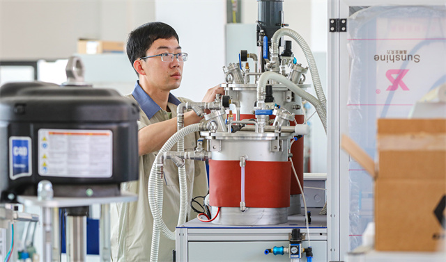 ??????在山東世泓智能裝備股份有限公司生產(chǎn)車間內(nèi),機(jī)械工程師正在調(diào)試高端汽車門鎖控制器設(shè)備零部件的精確度。