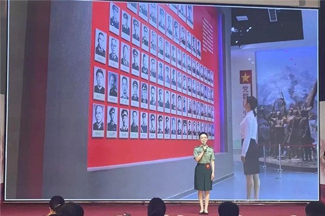 黃曉芳講述了馬石山十勇士在日軍掃蕩合圍中,反復沖殺敵人包圍圈,舍身掩護千余名群眾轉移的豪情壯舉。一個個動人心弦的紅色故事,展現出講解員們過硬的政治覺悟和理論素養。英雄烈士形象也在講解中變得更加可信、可及、可愛、可敬,評委及現場觀眾無不為之動容。