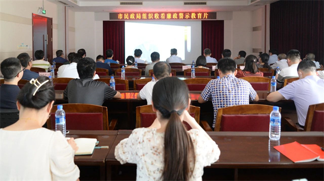 為切實提高民政系統黨員干部廉潔自律意識,增強拒腐防變能力,7月10日,威海市民政局組織全體干部職工觀看了《中華人民共和國監察法實施條例—解讀》《破防》《激濁揚清》廉政警示教育片,通過系統講座和列舉真實發生的典型案例,以案為鑒,以案釋法,汲取教訓。