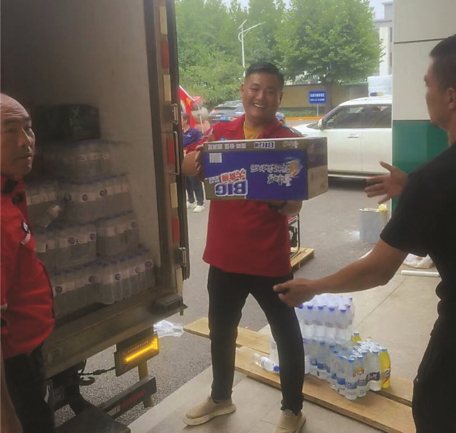 8位愛心人士當中,既有開公司的老板,也有做生意的個體戶。大家有錢出錢,有力出力,都希望為受災群眾盡一份綿薄之力。王海曉是一家物流公司的老板,得知消息后主動報名參加,調度了一輛車身長為9.6米的貨車作為運輸救援物資的車輛并駕車前往。榮成一位愛心青年在得知消息后,第一時間采購了滿滿一私家車礦泉水、八寶粥等即食食物,與愛心車隊一起送往涿州。