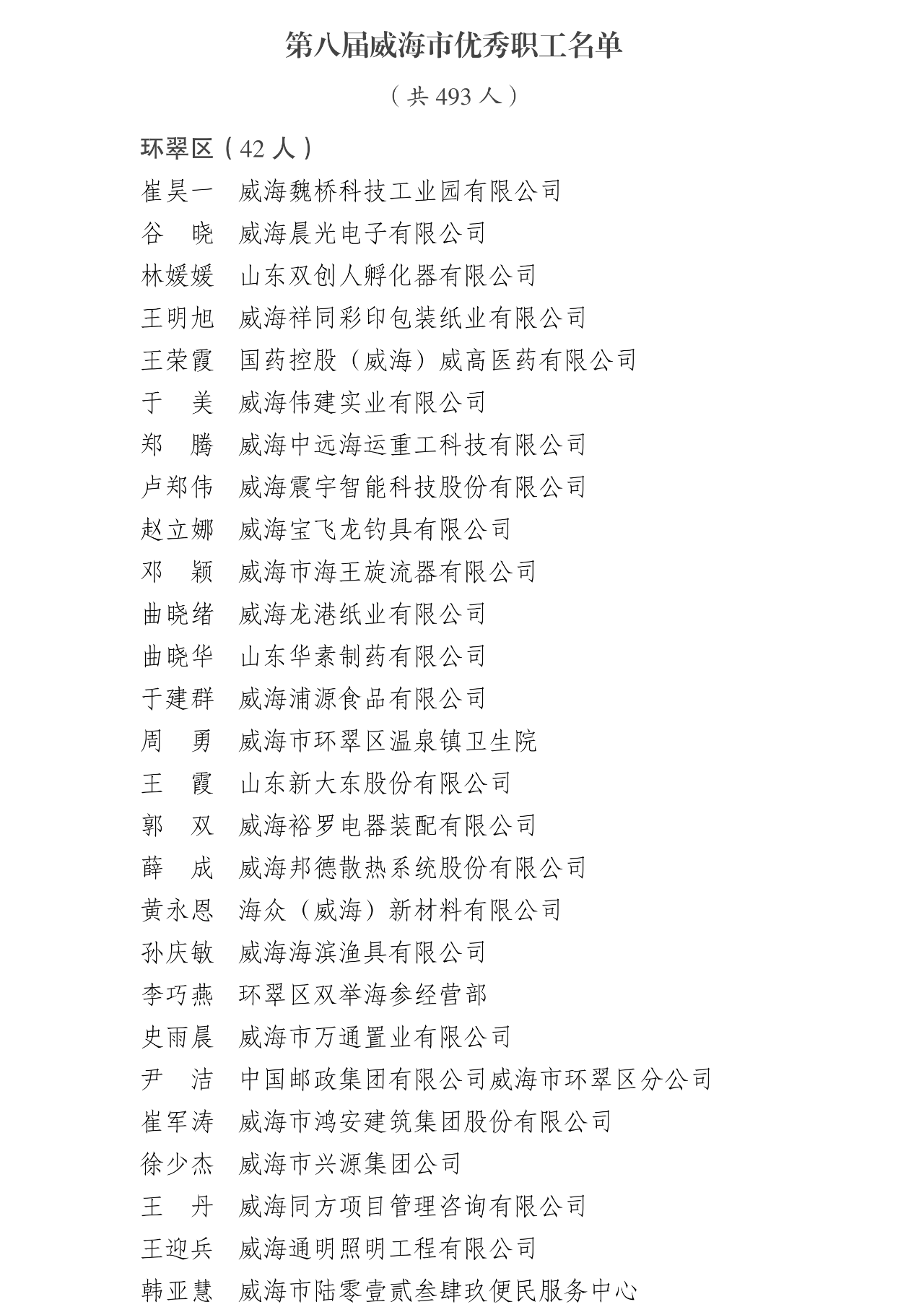 為表揚先進、樹立榜樣,弘揚勞模精神、勞動精神和工匠精神,威海市總工會決定,通報表揚崔昊一等493名威海市優秀職工。