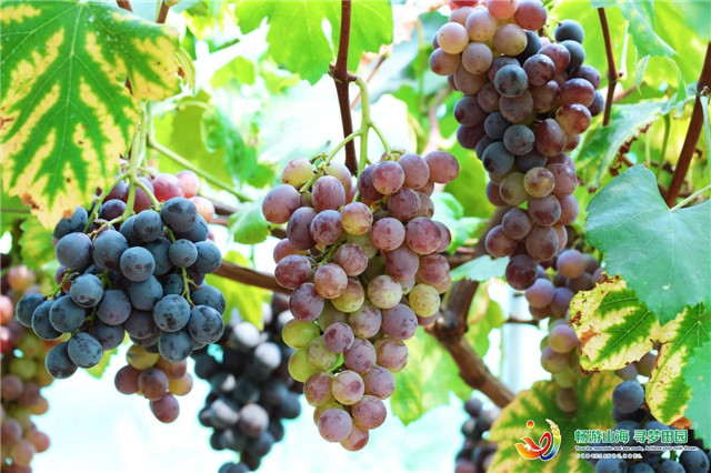 位于里口山的秋歌采摘園,藤蔓綠葉間,與滿架葡萄相遇,陽光剛好,它說,今日宜蓄甜。