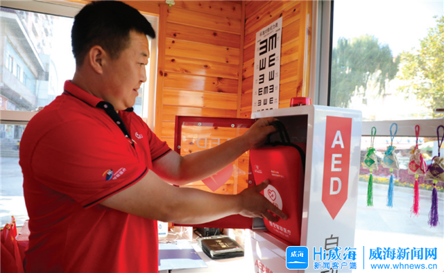 ??????10月11日下午1時30分左右,在環翠區鯨園街道北門外社區步行街上的雷鋒共“醫”屋內,自動體外除顫器廠商的工作人員正在安裝設備。“今天下午我們還要去兩所學校安裝并推廣自動體外除顫器的使用。”工作人員文殿仲介紹,這臺自動體外除顫器主要用于步行街及周邊商業體內人群的心臟驟停救治。