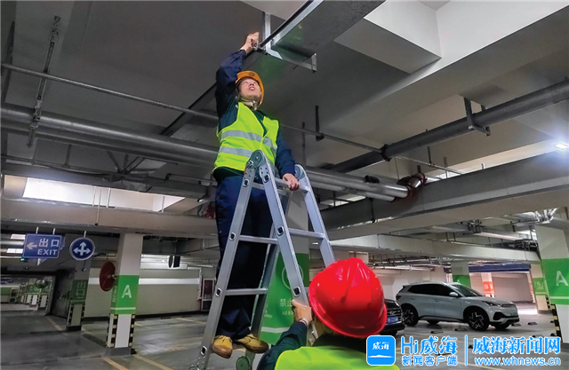 10月12日下午,在高新區一小區地下停車場,中國鐵塔股份有限公司威海市分公司工作人員正在安裝5G室內分布系統?!拔覀兘Y合每個地下停車場結構情況的不同,采取傳統天饋系統、最新廣角漏纜技術等多種建設模式,按場景推動5G室內分布系統建設,多措并舉精準覆蓋,優化網絡信息服務?!惫ぷ魅藛T介紹。