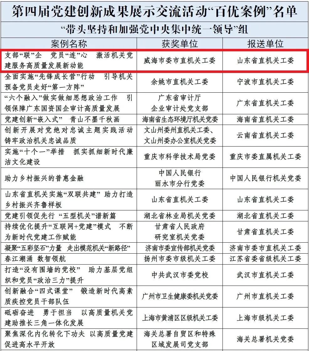該案例充分展現了我市機關黨建以黨的政治建設為統領,堅持圍繞中心、建設隊伍、服務群眾,以創新創優、重實重效、聯合聯動工作理念破解機關黨建新老難題、進一步提高黨建質量的有益探索和實踐成效。(來源:威海機關黨建)